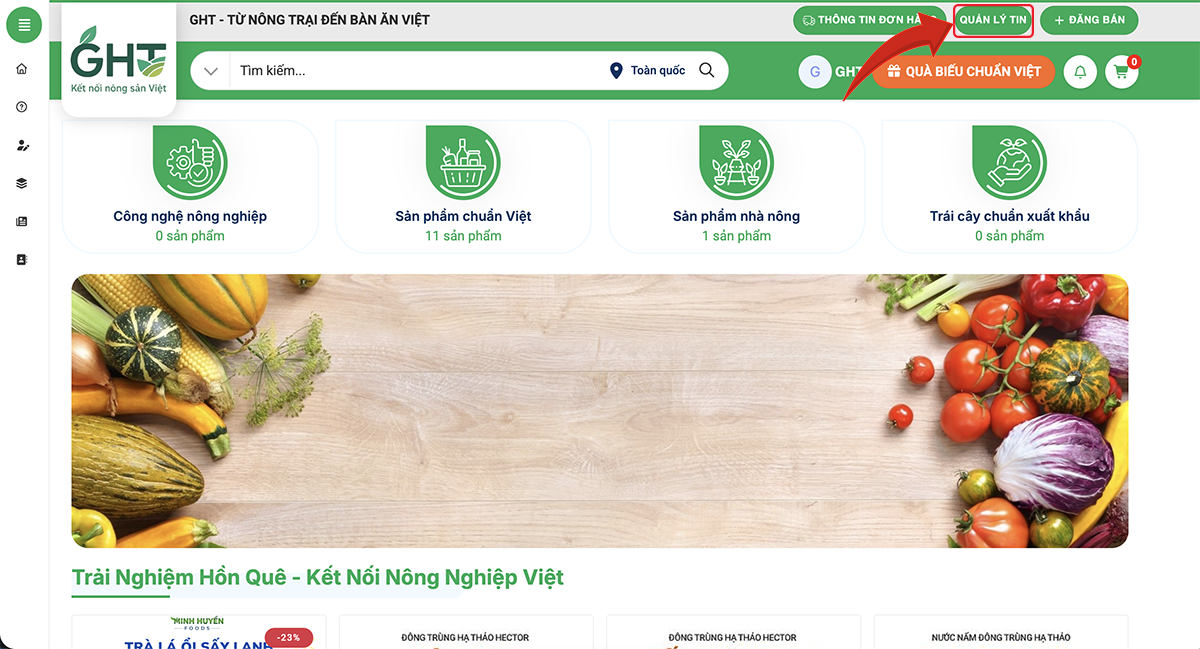 Bước 1: Vào trang Quản lý tin đăng bằng cách nhấn vào Quản lý tin tại đầu trang chủ.