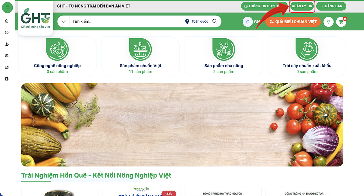 Bước 1: Đăng nhập vào tài khoản của bạn. Nhấn vào Quản lý tin để vào trang Quản lý tin đăng.