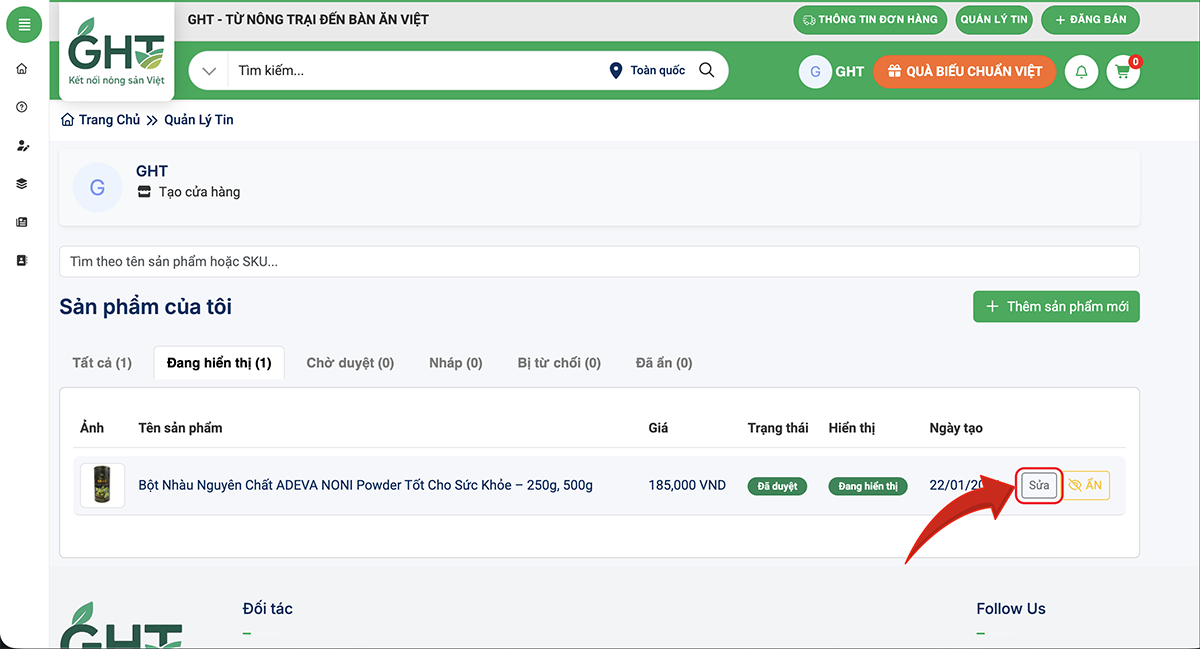 • Khi bạn sửa tin nhưng thông tin sửa bị từ chối, thì tin cũ của bạn vẫn hiển thị trên GHT. Nếu bạn không muốn tin này được đăng, bạn có thể Ẩn tin.